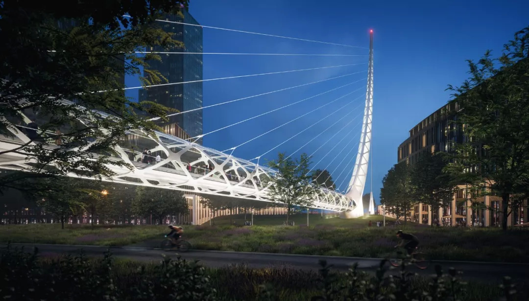 卡拉特拉瓦在达拉斯的这一桥梁设计,希望帮助打造一个自然、充满活力的休闲区域,并进一步强化滨江地区的关联。可达性是项目设计中的重要考量因素,无论是步行爱好者、老年人、残疾人或推着婴儿车的父母,都有着便利的入口和路线。