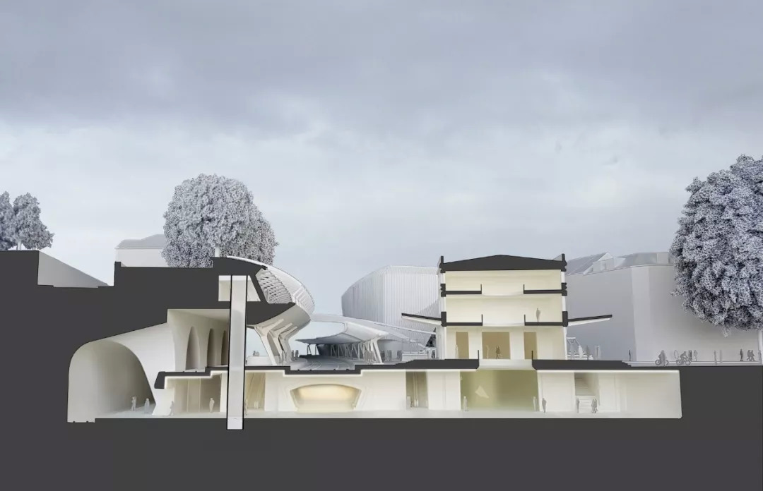 作为一个历史悠久的城市,位于比利时西南部的蒙斯(Mons)也正向当代建筑张开怀抱,而卡拉特拉瓦2004年于此赢得了其新车站及周边基建的国际竞赛。新车站打通了设计前蒙斯两个互不相连的区域,它像一只银白色的巨鸟,向两侧伸展着羽翼。但或许由于预算不断上升的原因,车站迄今尚未建成。