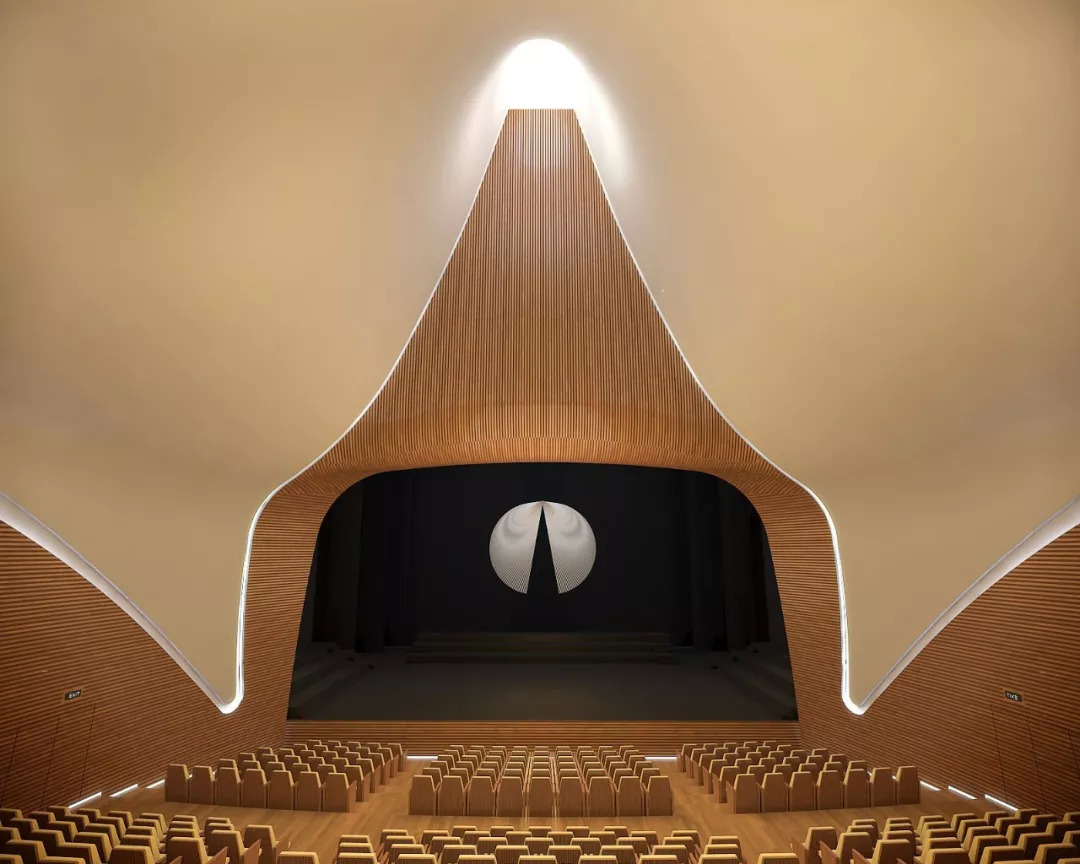 受元智大学校董会委托,卡拉特拉瓦开始了这一亚洲校园新建筑群的设计。元智大学位于台北市西南约40公里的桃园县,一期新建建筑群总面积约5.8万平方米,包括一个表演艺术中心、该校创始人纪念碑,以及艺术设计学院。