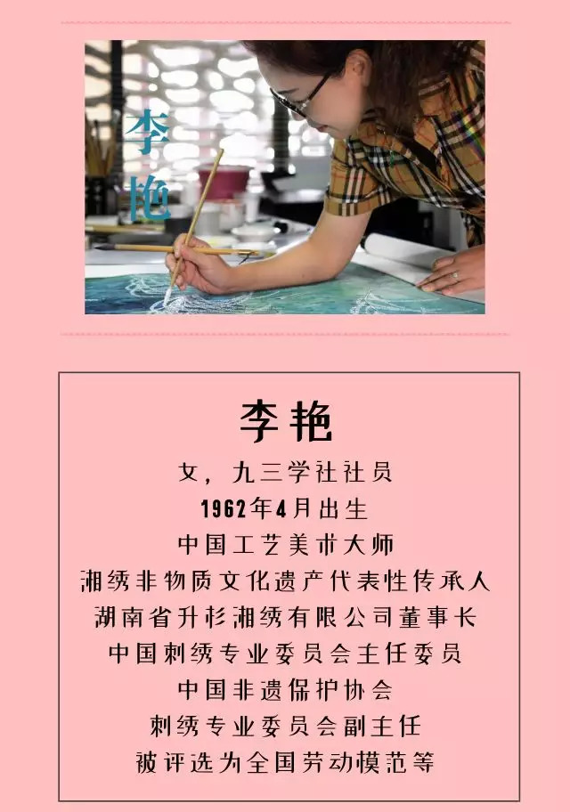 在我眼里,李艳是个了不起的女人。她扛着全国劳模、全国工艺美术大师的名头,却埋头做着湘绣的舞旗人,代表作《冬雪北国》至今在人民大会堂挂着。2002年,时任美国总统布什访华,国家领导人送给他的国礼——《布什总统全家福》湘绣作品,也出自她的针下。她还有好多绣品在各种大展上不停获奖。