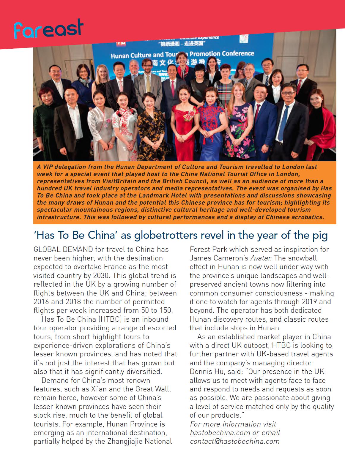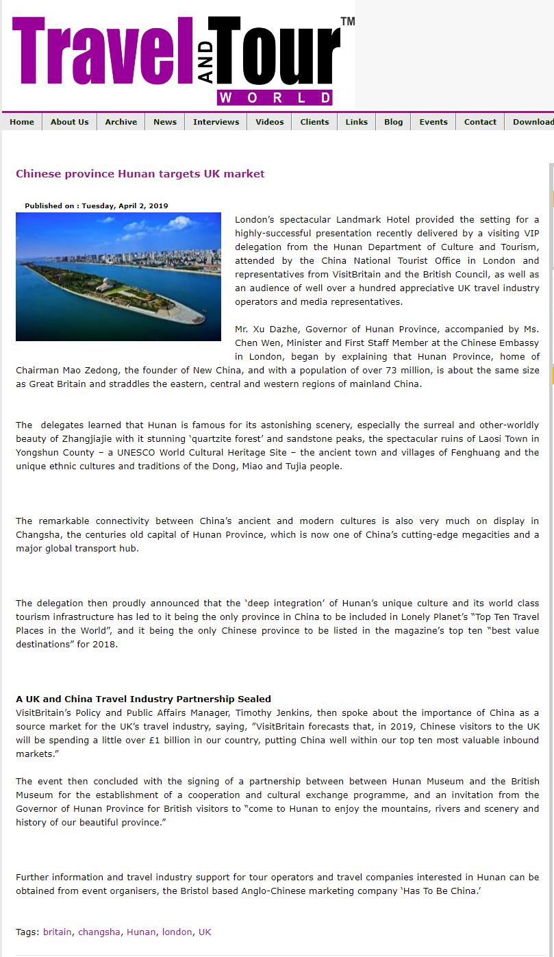 英国旅游业界专业期刊Travel and Tour World发文《中国湖南省精准对接英国旅游市场》