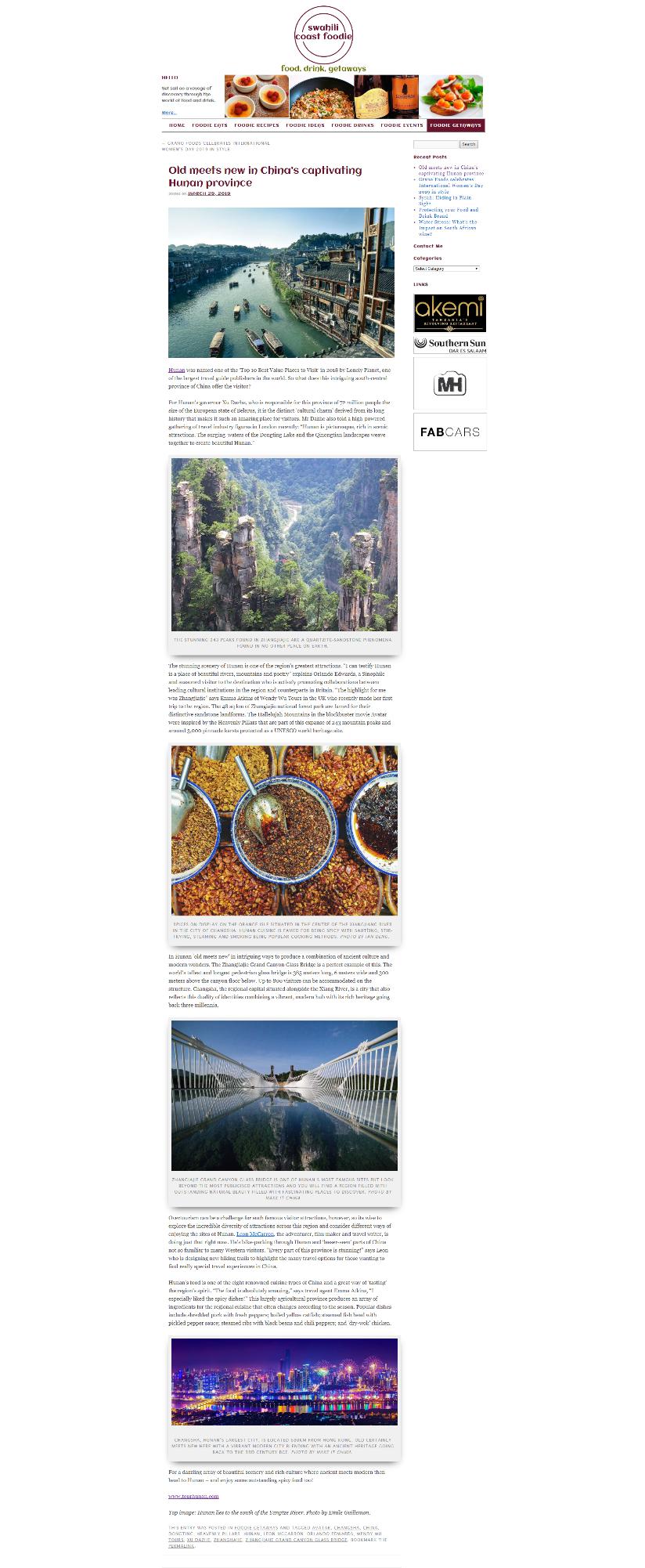 英国旅行博客网《吃货旅行》(Wahili Coast Foodie)发文《充满魅力的湖南:古老与现代交汇》