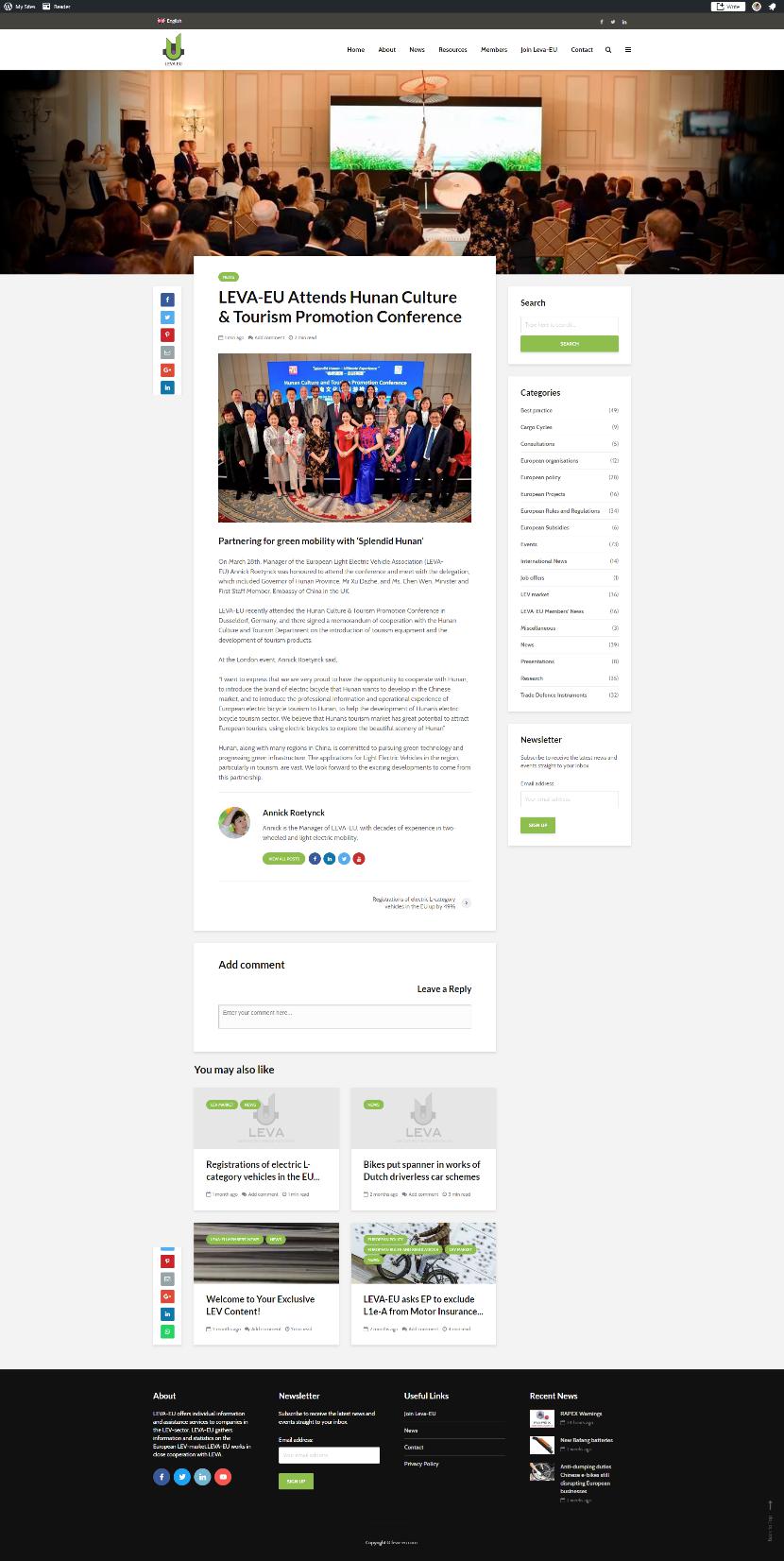 欧洲轻型电动车协会官网发布《欧洲轻型电动车协会参加湖南文化和旅游推介会》报道