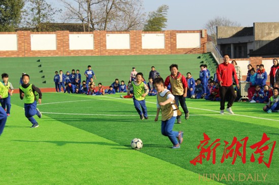学校积极开展规范化、系列化、多样化的体育活动,特别是从小学一年级起就开设足球课程,致力打造精彩纷呈的足球文化,全面提升校园足球水平和学生综合素质。学校组织成立足球队,规范训练,完善班级竞赛制度,形成“人人都参与,班班有球队,年年搞比赛”的长效机制。2016年6月,学校被教育部认定为“全国青少年足球、篮球特色示范学校”。2017年8月,在娄底市第一届中小学生运动会小学男子足球和小学女子足球比赛中均获第三名。