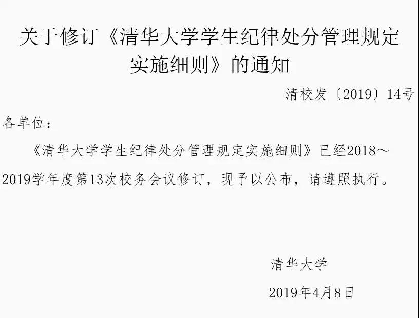 清华大学昨天公布了最新修订的《清华大学学生纪律处分管理规定实施细则》。与2017年公布的《细则》相比,此次修订的内容主要集中在对学术不端行为的处罚规定方面。例如对发表研究成果中有抄袭、伪造等较为严重的学术不端行为的处罚,从原来的记过升级为开除学籍。