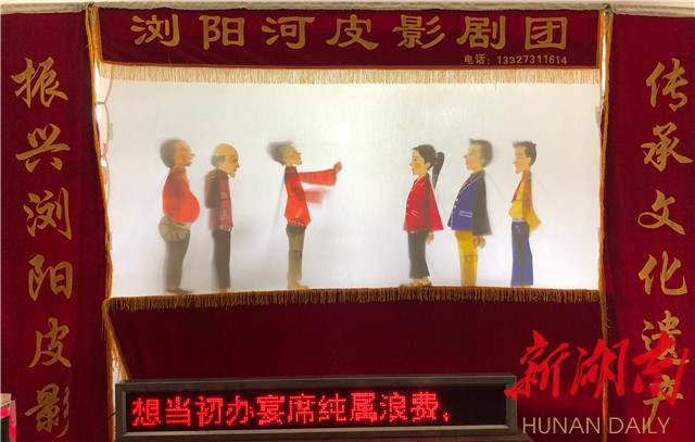 “一束鲜花传情留香,一条微信见字如面,一杯清茶暖人心脾,一声问候真心祝福……”近日,一幕皮影戏传唱在浏阳市镇头镇的大街小巷、田间地头,受到村民们的热捧。这是由长沙市级皮影戏传承人宋伟军耗时3个月编写、排演而成的新戏《酒宴后的风波》,以镇上曾真实发生的事件为蓝本,引发大家对大操大办陈规陋习的深思。