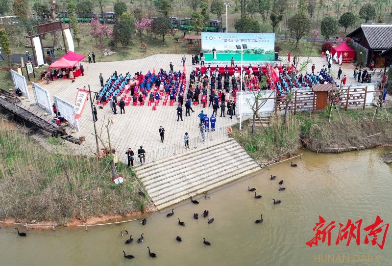 每年4月1日至7日,是湖南的“爱鸟周”。此次活动由省林业局主办,岳阳市林业局、湘阴县政府和省野生动植物保护协会承办,以“关注候鸟迁徙,维护生命共同体”为主题,用多种形式呼吁大家爱鸟护鸟、保护野生动物,吸引近千名嘉宾与游客来此。省林业局总工程师桂小杰宣布活动启动。湘阴县政府县长李镇江为活动致辞,并与省林业局野生动植物保护处处长陈春华、自然保护地管理处处长王明旭、宣传中心主任欧日明、省湿地保护中心主任薛萍、省野生动植物保护协会会长郑焱、岳阳市林业局局长方归农共同向护鸟飞志愿者授旗,县政协副主席甘政、县政府办主任张淼参加仪式。
