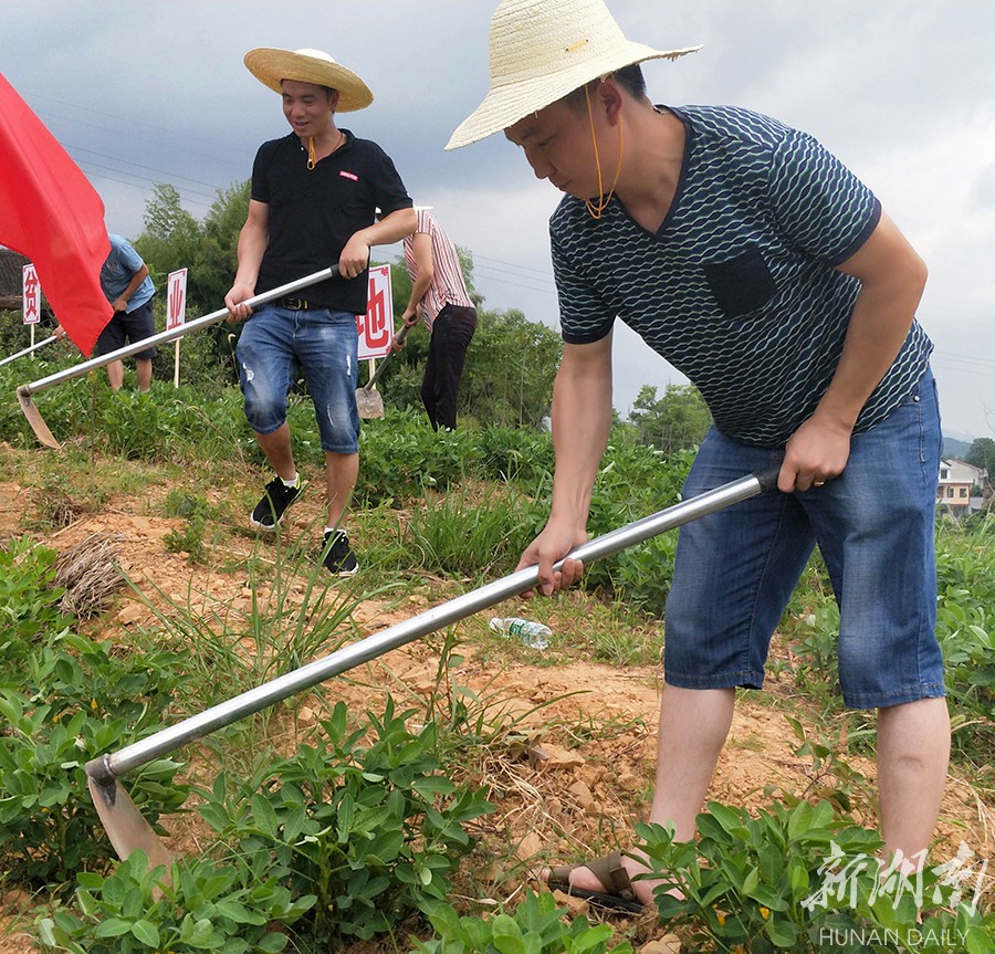 三塘铺镇鸡公塘村党员在扶贫产业基地义务劳动。
