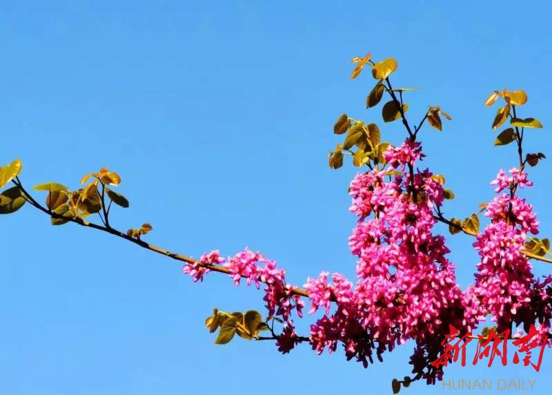 紫荆花开,满条红,一树红,红彤漫山遍野,在我心中早已是一片永不凋零的红霞。