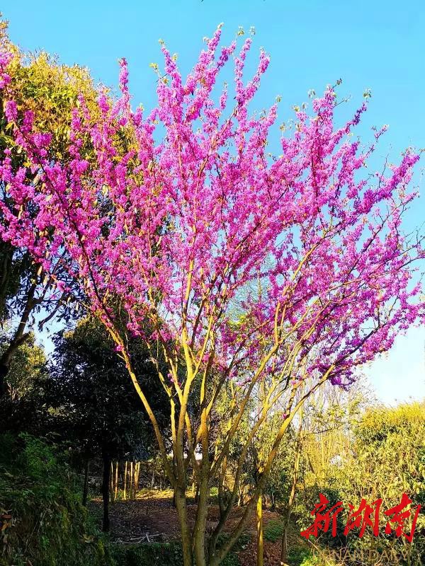巨紫荆乃是我国本土紫荆属的新品种,因属高大乔木有别于灌木紫荆而得名,为珍稀濒危花木。家乡巨紫荆,还是我与兄弟于前些年清明节爬山登高时的意外发现,这在我国南方发现大面积呈块状分布的巨紫荆尚属首次,所以消息一经传出,便为各级新闻媒体竞相播发转载,名噪一时。随后,总有不少看客、拍客前来家乡寻芳猎奇。