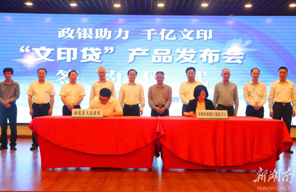 湖南日报·新湖南客户端5月30日讯(记者 奉永成) 今天,记者从农行湖南分行在娄底市新化县召开的“文印贷”产品发布会上获悉,为支持新化县“文印”(文字材料印刷)全产业链发展,农行湖南分行推出“文印贷”信贷产品,未来5年,为新化县文印产业提供8亿元左右的意向性信用额度支持。