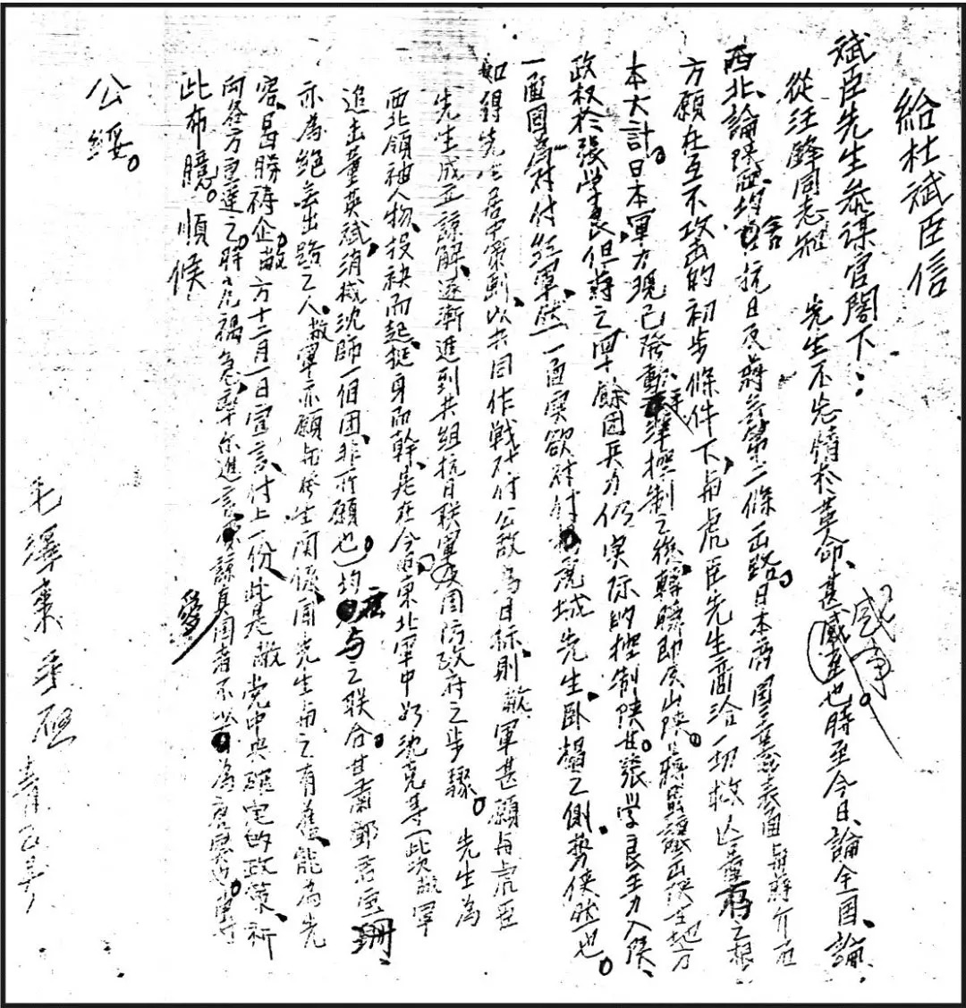 1931年"九一八"事变后,杜斌丞提出回汉一家,陕甘一体,打通新疆,结好苏联,抗日救国的西北大联合主张,并佐助杨虎城平定甘肃,出任秘书长,执掌政务。1933年,建议杨虎城联共反蒋抗日,并多方努力,达成杨虎城的十七路军和红四方面军“互不侵犯,共同反蒋”的协议,中共代表武志平盛赞杜斌丞是“一位非党的布尔什维克”。中央红军结束长征到达陕北后,又是在杜斌丞联络下,杨虎城部与中央红军建立联系、达成互不侵犯协议。1936年10月,蒋介石抵陕,督促张学良、杨虎城加紧时间围剿陕北红军。张、杨二人多次劝谏无果后于12月12日实施“兵谏”,这就是震惊中外的“西安事变”,其中有杜斌丞的积极促进。事变后他接任改组后的陕西省政府秘书长,参与起草张、杨的"八项主张",并任红军、东北军、西北军三方联合办公厅西北军代表,为西安事变的和平解决多方奔走。