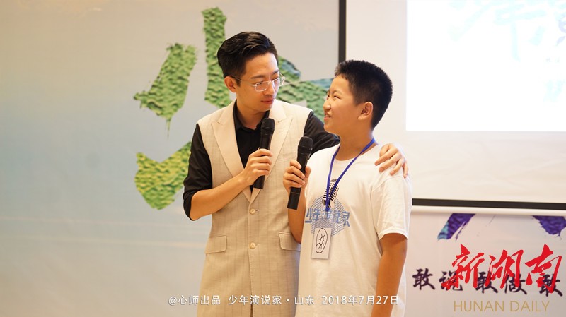 (少年演说家现场,吴月波让每个孩子敢说敢做敢自我,勇敢发声。)