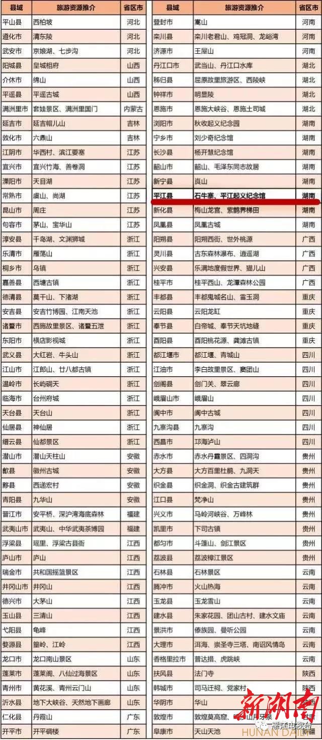 平江县入选首届中国县域旅游竞争力百强县