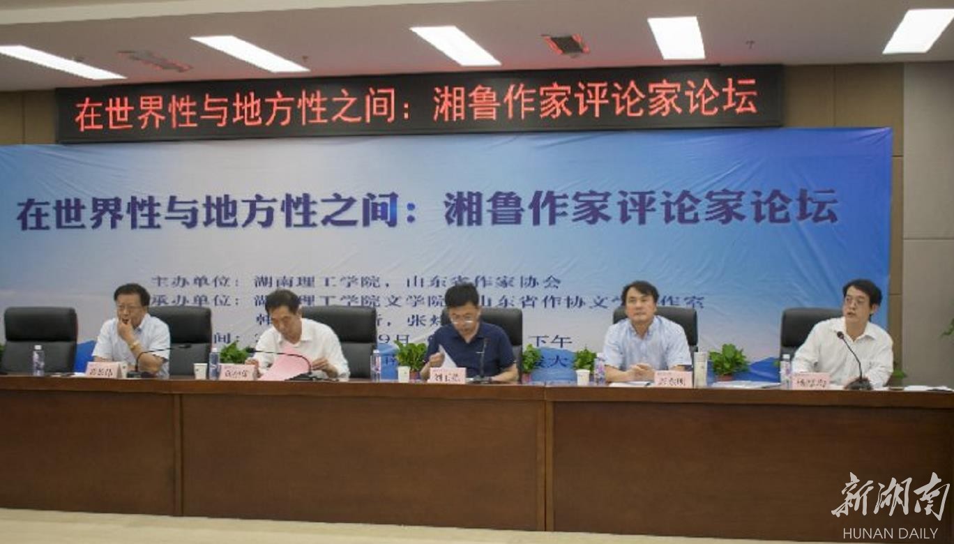 湖南日报·新湖南客户端5月29日讯(记者 徐亚平 通讯员 谢洁玲 余振海 杨洁)为了推动深化中国现当代文学和地域语言文学研究,促进湖南与山东两地作家、评论家之间的交流合作,今天下午,由湖南理工学院与山东省作家协会主办,湖南理工学院文学院、山东省作协文学创作室、韩少功研究所与张炜工作室承办的“在世界性与地方性之间:湘鲁作家评论家论坛”,在湖南理工学院举行。来自山东与湖南两地的40余名作家、评论家共聚一堂,围绕文学创作的世界性与地方性话题展开探讨。