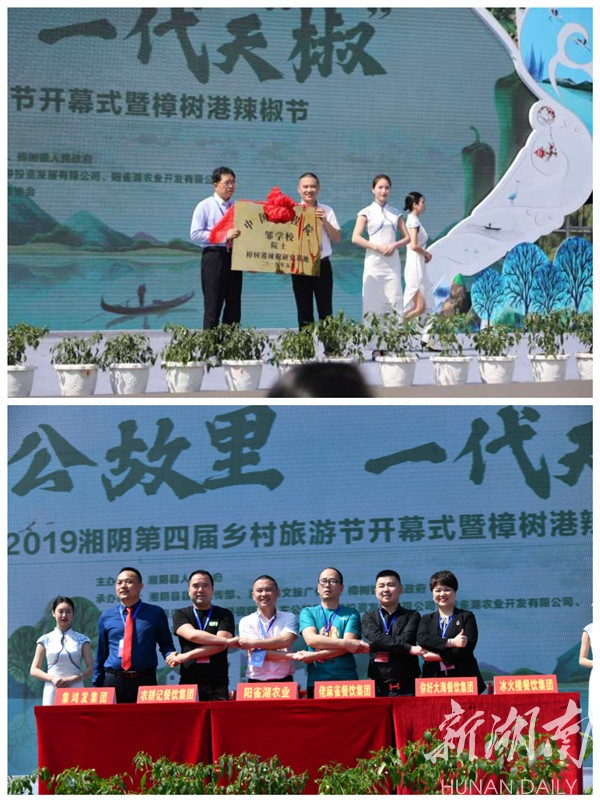 省文化和旅游厅副厅长高扬先等领导出席。岳阳市人民政府副市长邱虹宣布湘阴第四届乡村旅游节开幕式暨樟树港辣椒节正式开幕,中国工程院院士邹学校为阳雀湖农业开发有限公司授“樟树港辣椒研究基地”牌。