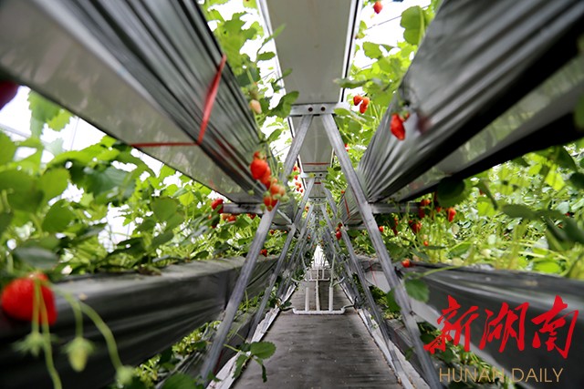 这家“喝”着营养液、“住”着高层公寓的草莓园,就是怀化市首家采用无土立体栽培模式的“温室空中草莓园”。与传统平地草莓相比,立体无土草莓更干净,游客们可在大棚随意穿行,体验采摘乐趣。