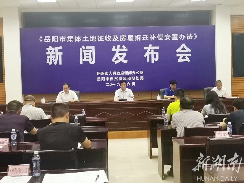 湖南日报·新湖南客户端6月11日讯(记者 徐亚平 见习记者 吴广)今天上午,岳阳市政府新闻办、市自然资源和规划局召开新闻发布会。会上,岳阳市政府副秘书长廖长生称,该市最新颁布的《岳阳市集体土地征收与房屋拆迁补偿安置办法》(以下简称新《办法》)规定,从5月6日起,全市征地价格、房屋拆迁、部分青苗设施等补偿标准分别上调30%、25%、30%。此举将实现国家、集体、拆迁户多赢的局面,推进国家区域性中心城市、岳阳大城市建设。