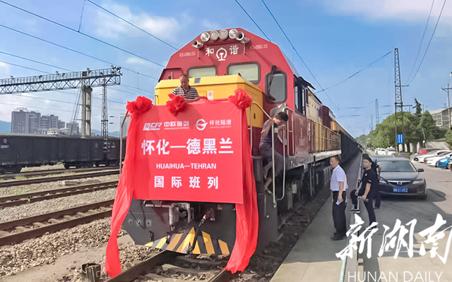 湖南日报·新湖南客户端6月28日讯(记者 李夏涛 通讯员 袁廷轩 姚晓伟)“火车拖来的城市”怀化再次迎来对外开放大事。今日上午10时30分,伴随长鸣的汽笛,怀化驶往伊朗首都德黑兰的中亚班列徐徐开出怀化西站,这是继怀化——明斯克中欧班列后,又一趟开向“一带一路”沿线国家的国际铁路货运班列。怀化也成为继省会长沙之后,我省第二个开通中亚班列的城市。