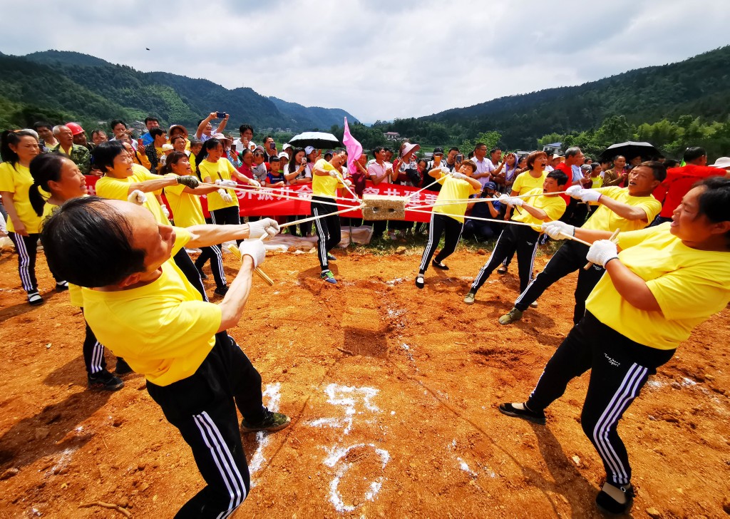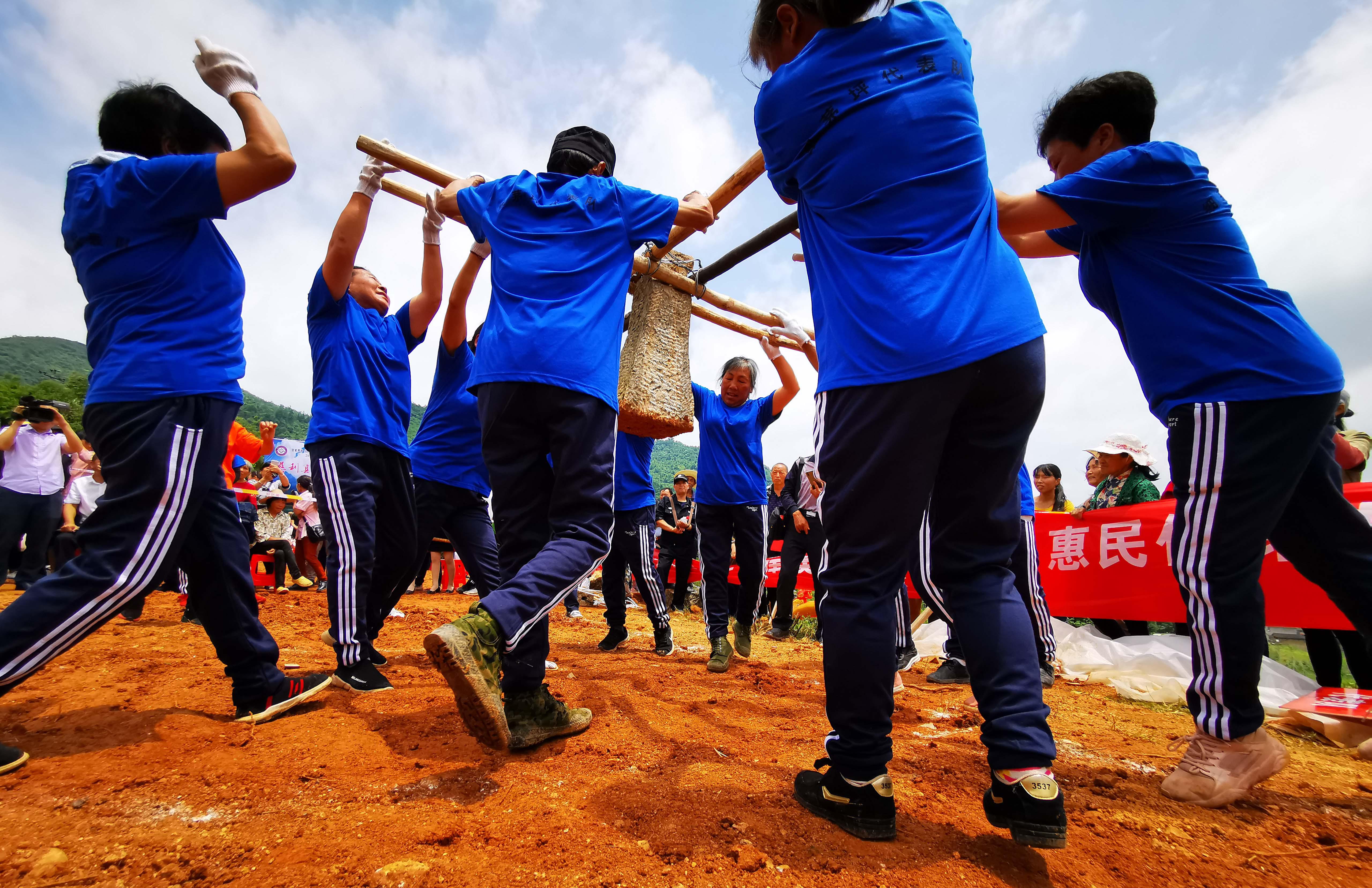 6月13日,为保护非遗成果,推动传统文化的传承与发展,在湖南省非遗促进会的指导下和支持下,慈利县“财源建设杯”打硪运动会在高峰土家族乡茅庵水库举行。这是慈利县举办的首届打硪运动会,惠民供销代表队与中国银行慈利支行、高峰土家族乡、张家界养老协会、张家界老唐三下锅、茅庵、细茅坪等7支代表队参加了本次打硪比赛。