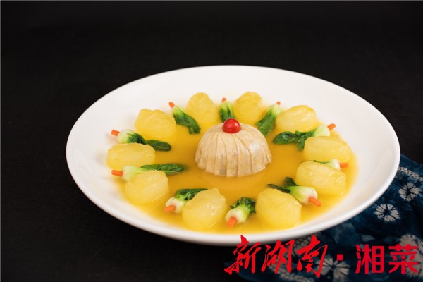 “我们的南岳大庙有这样一个理念,佛道共存,它的意思就是用宽广的心看待不同的宗教,这样才可以拓展自己的视野。我们做菜也是一样,观念要适时更新,接纳并学习他人的长处,补己之短。南岳素菜有老样式,更应该有新样式。于是,我就研究出了素鲍扣山珍这道菜。”旷松明这样回答。