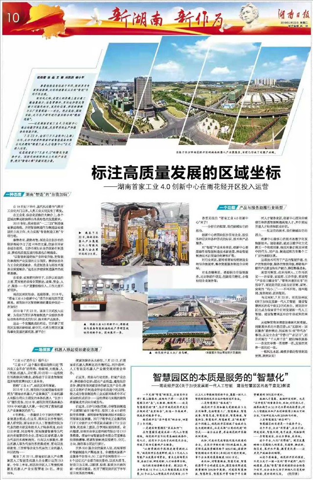 雨花区深刻领会,迅速部署。2018年,“湖南工业4.0创新中心”项目在雨花经开区落地。雨花经开区智能制造的建设步伐进一步加快!