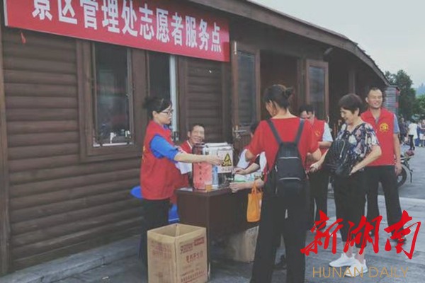 △景区管理处志愿服务点,“衡阳群众”正热心为游客提供服务(邓艳丽 摄)