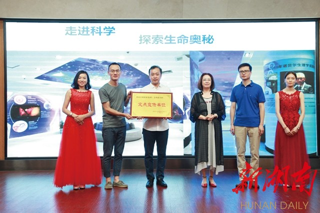 讲课结束后,蒋正博士与湖南省生命科学研究院特聘首席专家司素琴女士一起为金鹰读者服务中心授牌定点宣传单位,为广大读者的健康保驾护航。司素琴女士向读者们介绍了湖南省生命科技展馆,邀读者们一同走进科学,探索生命奥秘。