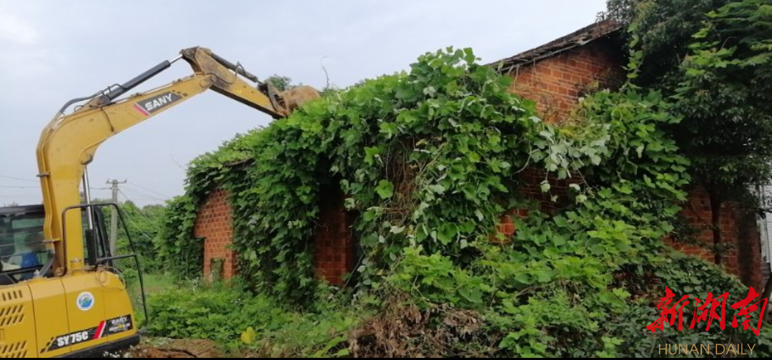 6月23日,雨后初晴。一大早,荣湾湖村村民邹大量就指挥着挖掘机,拆除自家闲置的空心房。