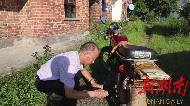 【排山村村民 刘观生:车子骑了一段时间就要检查一下,看机油够不够,如果不够,就马上要加,不然的话,机器就会磨损,缸就会烧掉。这是个关键的保养措施。】