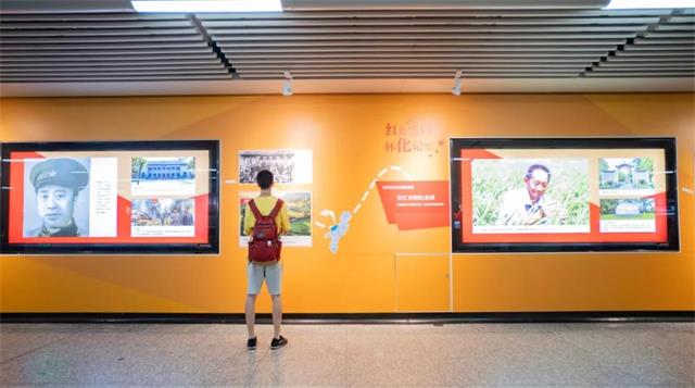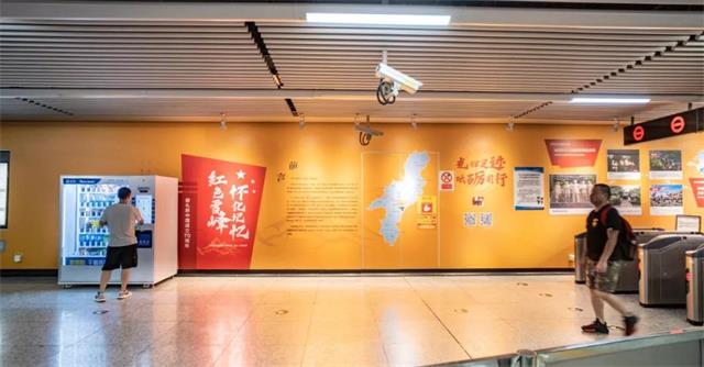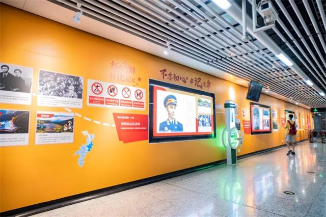 站厅文化墙图文并茂,以小地图的方式,分别向观者介绍怀化境内7大红色景点、相关名人与历史事件,令在场乘客由此对怀化产生宏观全面的认识,将怀化与浓厚的红色气息紧紧维系在一起。
