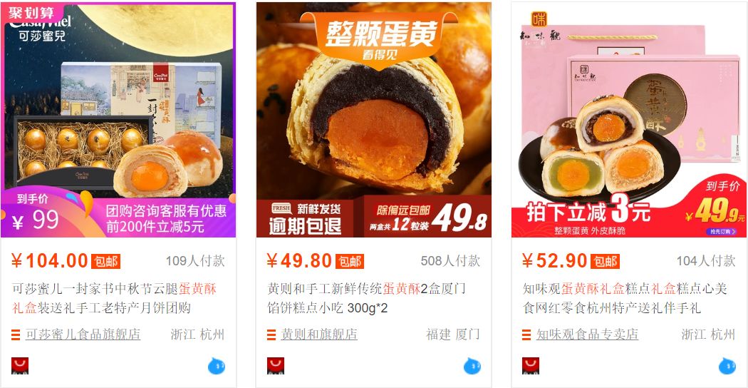 被包装过的蛋黄酥,已成送礼佳品。/ 淘宝截图