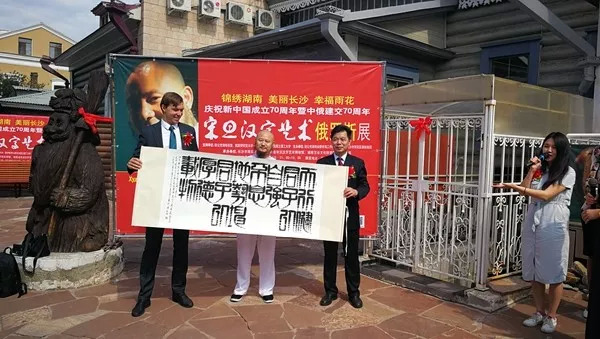 举办宋旦汉字艺术俄罗斯展开幕式。莫斯科时间8月13日上午,为庆祝新中国成立70周年暨中俄建交70 周年,由致公党湖南省委、伊尔库茨克国立理工大学指导,致公党湖南省委侨务工作委员会、中共长沙市雨花区委统战部主办,长沙市雨花区侨联、湖南省宋旦汉字艺术博物馆、湖南艺谷文化投资股份有限公司承办的宋旦汉字艺术展系列活动开幕式在俄罗斯伊尔库茨克市美术馆隆重举行。致公党省委田宗之秘书长、伊尔库茨克州文化部副部长叶列娜·阿帕诺维奇、中国驻俄罗斯伊尔库茨克总领馆领事张晓东等出席活动并为汉字艺术展开幕剪彩。