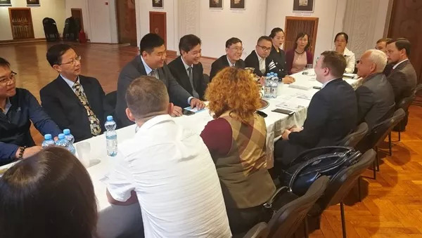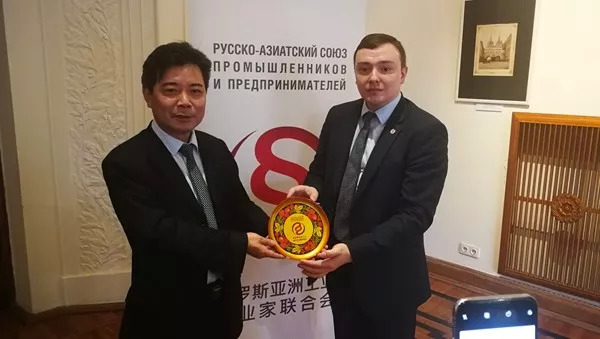 与俄罗斯亚洲工业商业企业家联合会会谈。莫斯科时间8月14日上午10点,考察团拜访俄罗斯亚洲工业企业家联合会并开展座谈交流。俄罗斯亚洲工业企业家联合会是一个为俄罗斯与亚洲国家的社会团体和企业、组织巩固协同合作的社会组织。其最重要的职能是为俄罗斯与亚洲国家的商业团体在多方合作方面消除文化壁垒,为建立统一经济共同体提供协助,该协会主席刘丽达,是中俄友好协会的副会长,刘少奇的曾孙女。座谈中,田宗之一行向俄罗斯友人推介了湖南致公,介绍了中国共产党领导的多党合作制度,表达了进一步加强交流,为“一带一路”商贸合作作出积极贡献的意愿。