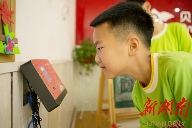 最吸引记者的还是校区门口配备的人脸识别机。“孩子到校先‘刷脸’,家长微信端会同步收到一条到校微信,每天的食谱以及孩子用餐、午休的照片也会同步发给家长。”湖南贝尔安亲云教育有限公司总经理赵静芳向记者介绍道。
