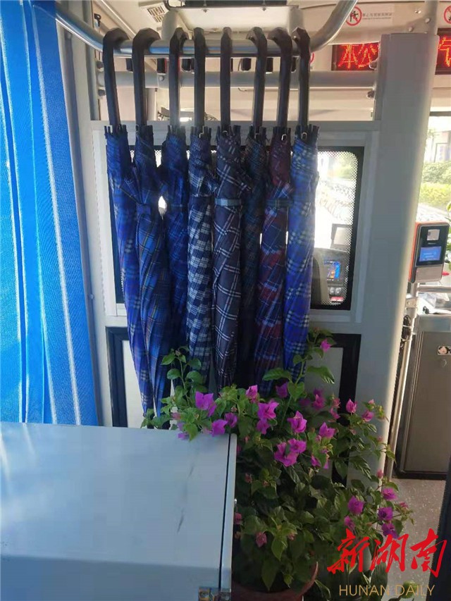 不仅车厢美,服务也很周到。陈显伟自掏腰包,购买了8把“爱心雨伞”,免费提供给没有带伞的乘客使用。乘客归还雨伞只需要交给任意一辆70路的司机就可以了,而这8把雨伞至今没有丢失一把。此外,车上还准备有餐巾纸,塑料袋和坐垫供乘客使用。