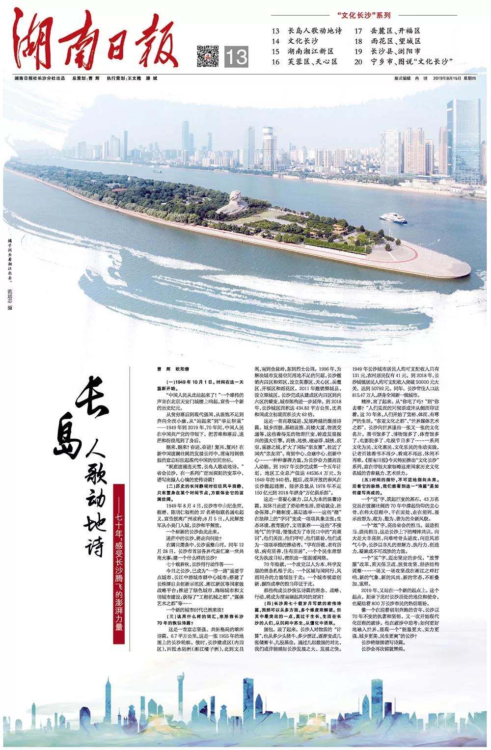 精神,富了起来。从“你吃了吗?”到“你去哪?”人们见面的问候语或许从侧面印证着。这70年来,人们开始了宽裕、体面、有尊严的生活。“东亚文化之都”、“世界媒体艺术之都”,长沙向世界递出一张又一张的文化名片。图书馆多了、博物馆多了、体育馆多了、电影院多了、电视节目多了……一系列文化为民、文化惠民、文化乐民的生动实践,让老百姓看书不再少、看戏不再远、休闲不再难。《湖南日报》今天特别推出“文化长沙”系列,意在带领大家领略这座国家历史文化名城的青春魅力、艺术活力。
