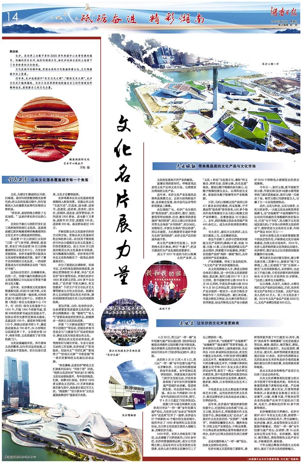 以大战略、大项目、大融合、大格局巩固文化产业的支柱地位,目前,长沙共有文化产业单位8万余家,文化产业从业人员约63万人,有上市文化企业7家。2018年文化产业总产出超3000亿元,文化产业增加值超900亿元。