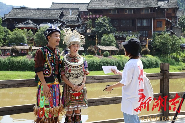 据悉,《甜甜的怀化》剧组主要拍摄怀化各地独特的风土人情,在通道选取了侗寨等静物延伸开来,寻找富有通道气息,侗族韵味的风俗活动,并加以通道转兵纪念馆这一极具红色气息的场景来体现通道和怀化的“甜”。当天剧组在皇都拍摄的场景主要有侗族大歌、侗家芦笙以及拦门酒等能够展现侗家风情的活动。《石榴花开》剧组则是选取少数民族结婚新人场景,以传统婚礼为载体进行拍摄,为新中国70周年华诞献礼,当天主要拍摄的镜头是一对侗家新人以及其他侗族儿女对着镜头用普通话和侗语表达对祖国的热爱之情。
