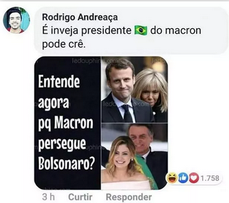 翻成中文大意是:“现在你明白马克龙为什么会嫉妒博尔索纳罗了吧!”