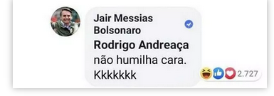 估计博尔索纳罗是个小心眼,被批评后憋了一肚子火,网友的这个帖子正好解了他的心头之恨,于是便在底下留言说:
