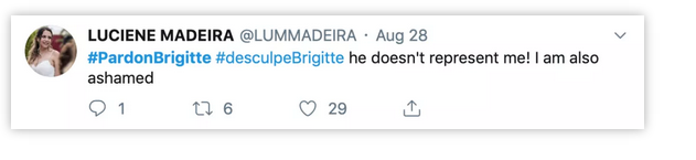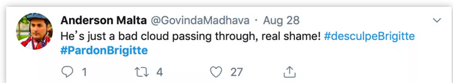 巴西网友在推特上发起了一个 “PardonBrigitte”(请求布里吉特的原谅)的话题,目前很多巴西网友已参与进来。