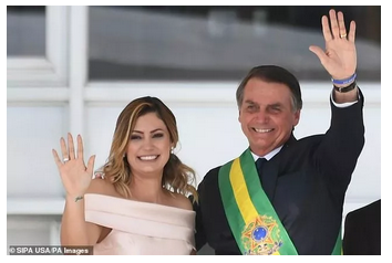 巴西总统博尔索纳罗和比他小25岁的妻子米歇尔