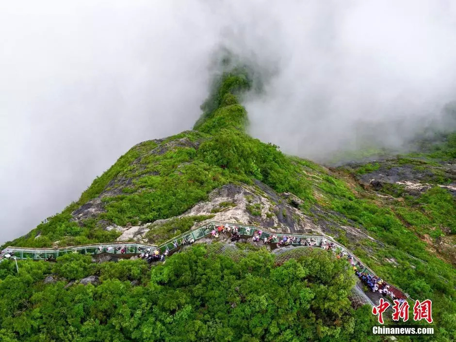 如果是雨后初晴的清晨,有幸可看到浩瀚云海在重峦叠嶂之间缓缓流动,如幻似梦,宛若人间仙境。