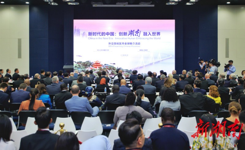 (今天下午,以“新时代的中国:创新湖南 融入世界”为主题的外交部湖南全球推介活动,在外交部蓝厅隆重举行。湖南日报·新湖南客户端记者 辜鹏博 摄)