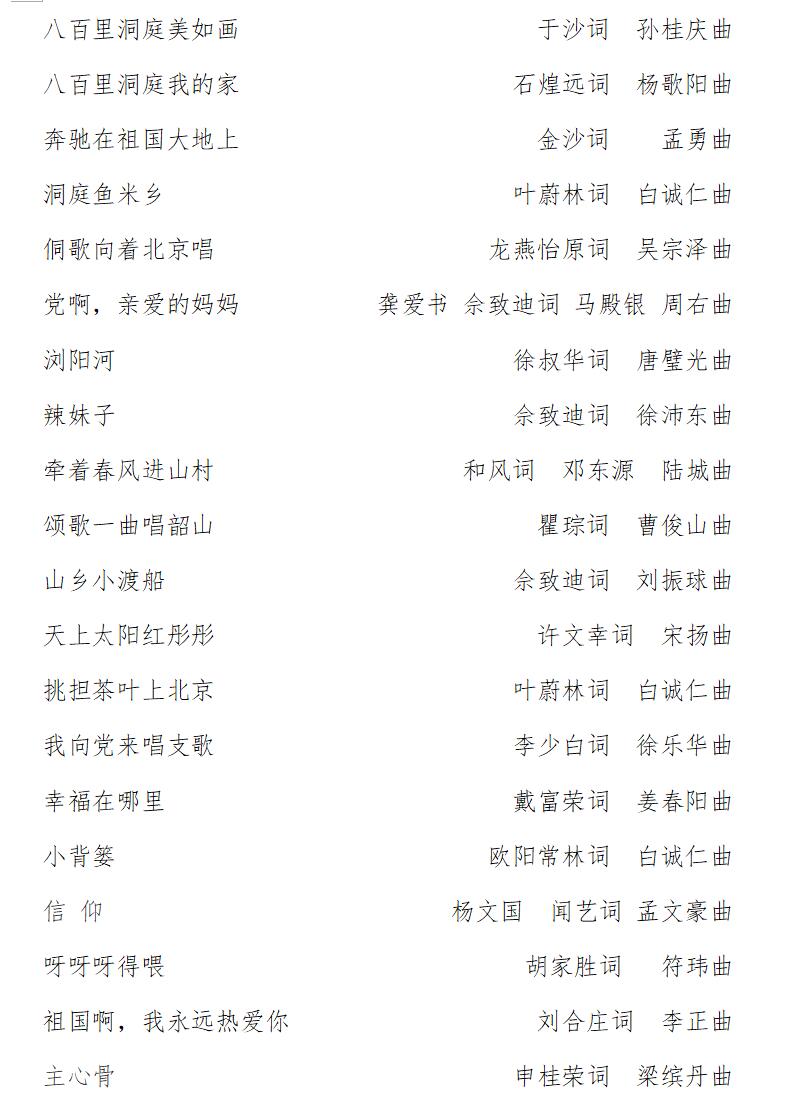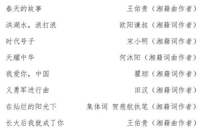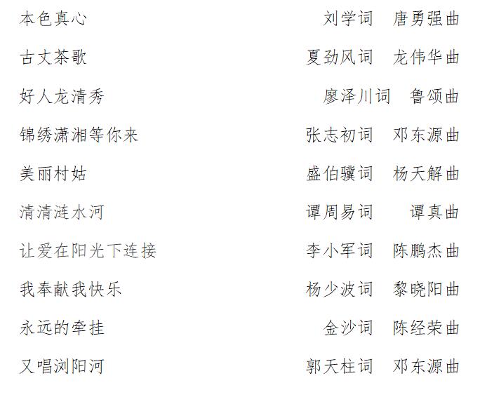 “唱响70年·我喜爱的湖南金曲”获奖作品名单