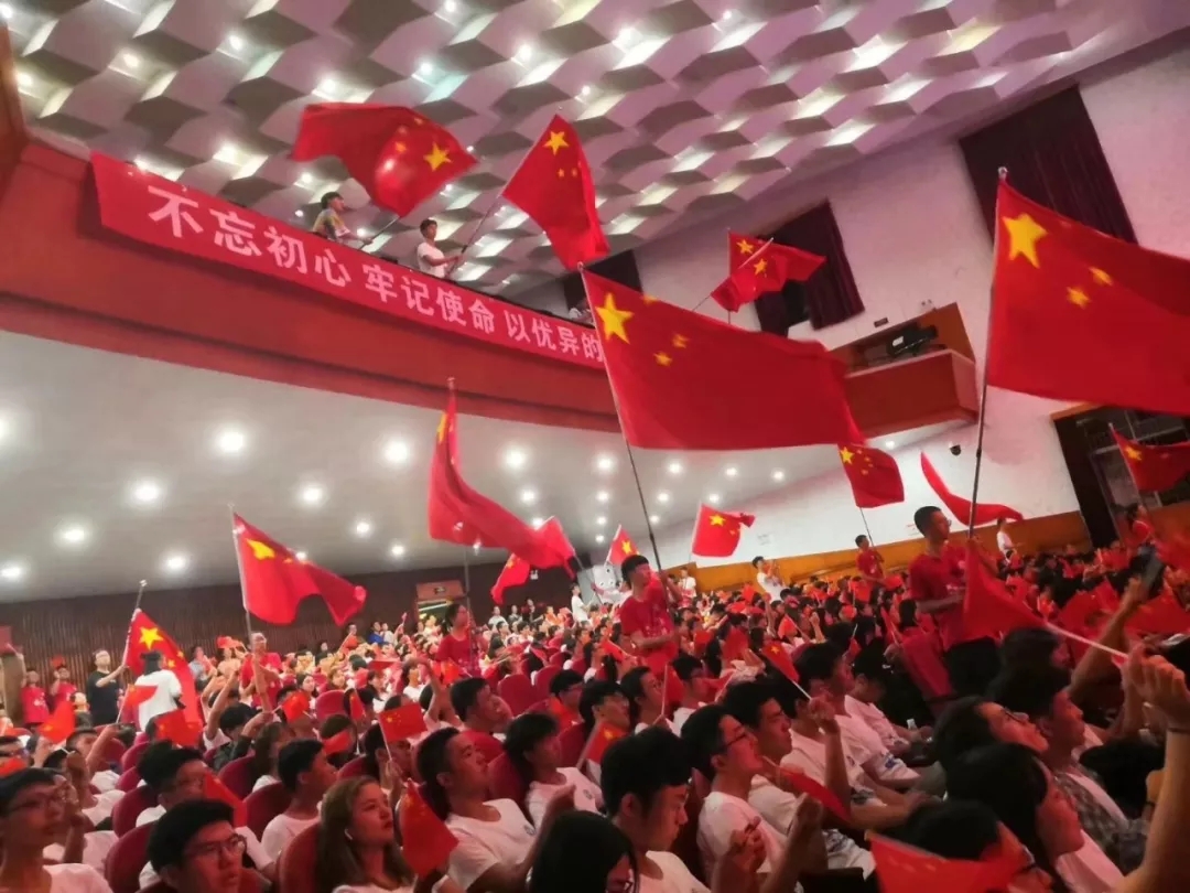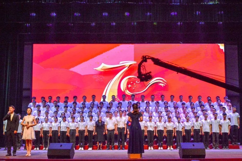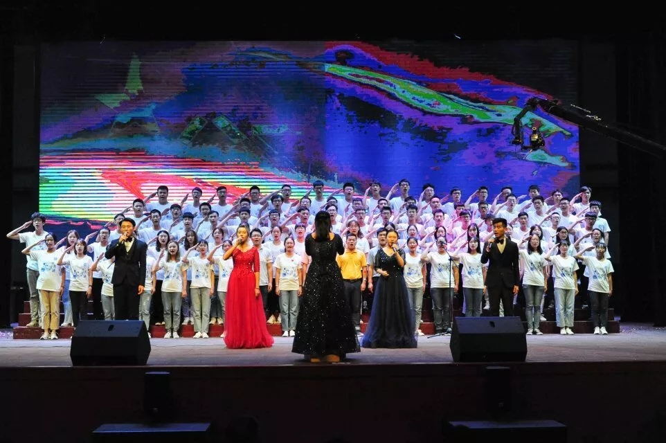 大四的学生们用洪亮的歌声唱响为国奋斗的豪情壮志与对祖国母亲最真诚最壮丽的祝福:未来高远,山河壮丽! 唱泱泱华夏,我辈自强!