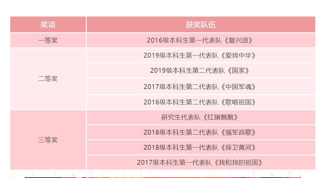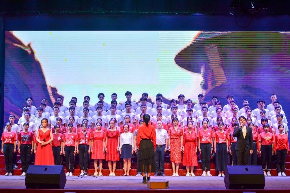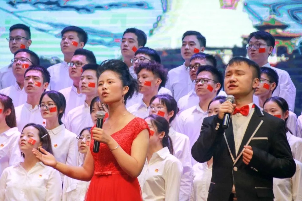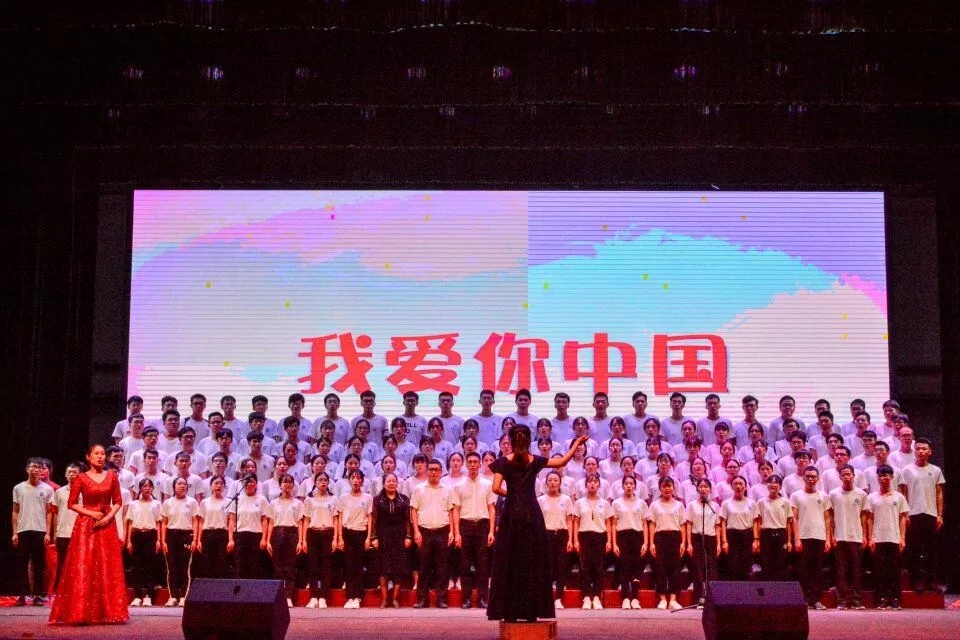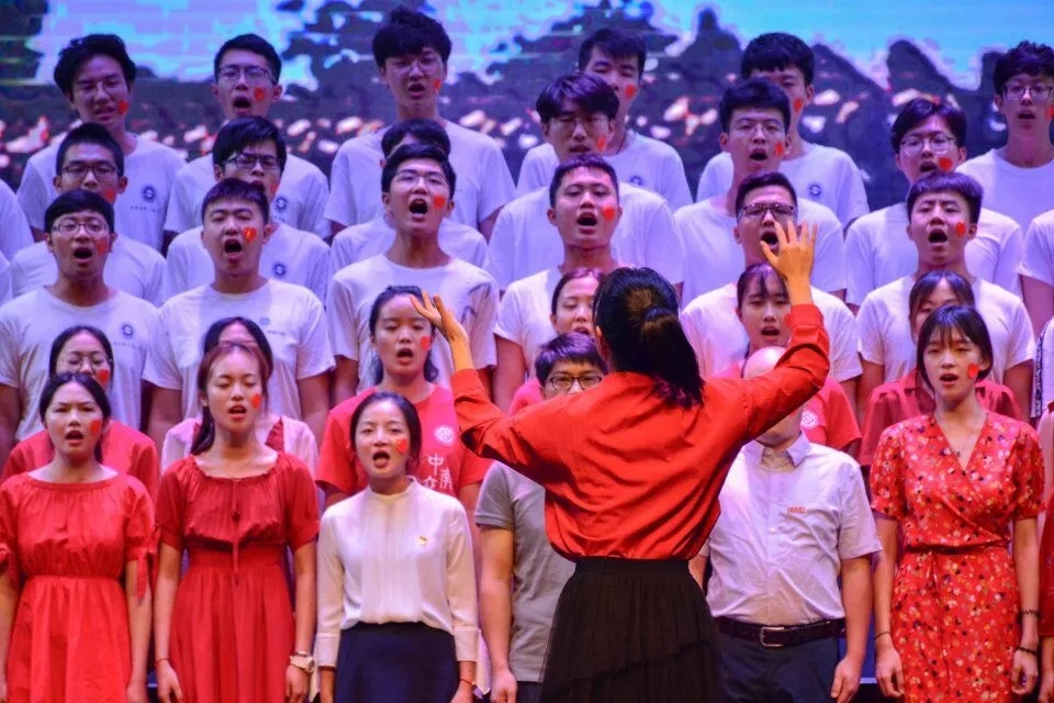 19级的同学们用嘹亮的歌声唤起中华儿女的自豪和向往,奏响出中华民族伟大复兴的乐章!艰难的岁月见证了光辉的历程,让我们一同展望美好的未来,讴歌新时代的壮丽辉煌!