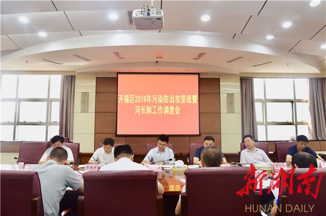 湖南日报·新湖南客户端9月5日讯(记者 彭永礼)今天上午,中共长沙市开福区委副书记、区长刘拥兵主持召开全区2019年污染防治攻坚战暨河长制工作调度会。他要求,区级各河长、各部门、各街道要以群众满意为目标,以水生态理念为指导,继续攻坚,持续发力,全面落实河长制,扎实做好水污染防治工作。区领导蔡冰、李国军、易文斌、蒋君等出席会议。