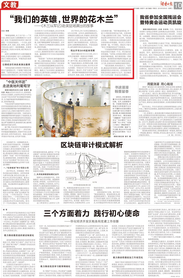 (刊登于2019年9月4日《湖南日报》文教版头条)